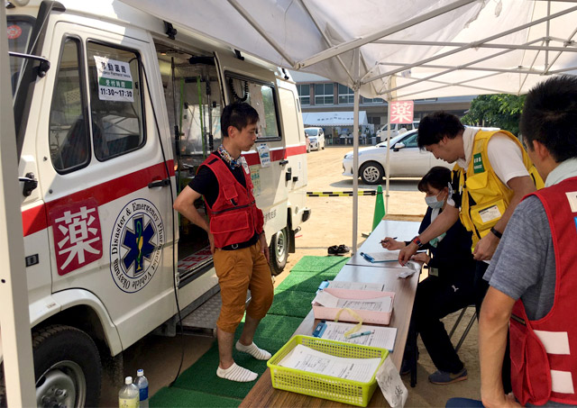 大地震などの災害が発生した場合、被災地に「移動型薬局」として駆けつけ、必要な薬を調剤して、被災地の皆様にご提供します。