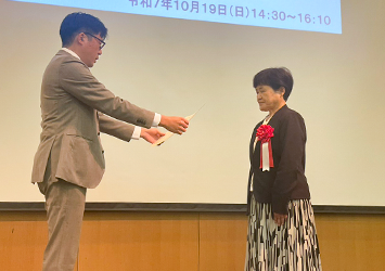 10月19日(日)、テクノサポート岡山にて開催された 令和7年度 岡山県薬業振興会薬事衛生大会「健康、医療、福祉の現状と将来展望」において、アイ薬局の丹下マリ子先生が、岡山県保健医療部長表彰の『令和7年岡山県薬事功労者』に選ばれました。