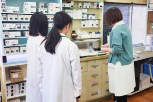 7月22日、倉敷青陵高校の1年生の生徒さんが、アイ薬局阿知店に職業体験に来てくださいました。当日は、調剤体験をはじめ、お薬の取り扱い方や服薬指導の流れ、薬剤師の仕事の役割などについて実際の現場を見学しながら学んでいただきました。
